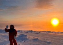 Пересекла Байкал на озёрных коньках.