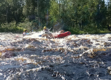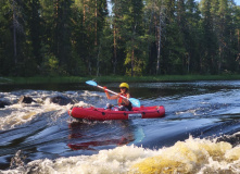 Я сплавлялась на надувных байдарках впервые и было сложнее, чем на каркасных или каяках, но адаптироваться легко, в "двушке". В "однушке" я так и не смогла вырулить, но это будет мой следующий этап в следующем году. Конечно, впечатления от природных красот Карелии - озера, реки, небо - незабываемые! об этом можно писать бесконечно, в Карелию хочется возвращаться снова и снова. Сложности (на мой взгляд) - появились на собачьем пороге: мы (которые новички на порогах) сначала знатно офигели от сильного течения, камней и высоты, но Константин успокоил - подробно объяснил участникам все нюансы, всех контролировал непосредственно на пороге и все прошли его без проблем.