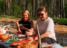 Не бойтесь брать детей. Мои, 13 и 14 лет, получили очень много новых знаний и навыков, а также незабываемых впечатлений и историй для своих друзей. Да, это не отдых в отеле, тут придется потрудиться не только в гребле, но и в подготовке байдарок, их подкачке, погрузке/разгрузке, в участи жизни лагеря, просыпаться раньше всех на дежурство, помогать готовить и помогать потом все съесть :) И во время всего этого, можно наслаждаться невероятными красотами рек, озер и лесов Карелии, беседами у костра и жаркой походной баней. Нам всем очень понравилось!