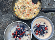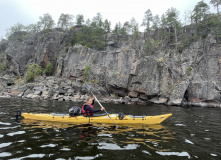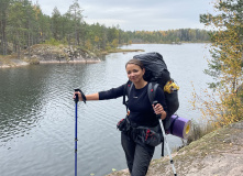 Так в 2022 начала путешествовать осознанно — бродила по Ленинградской области и Карелии: сплавлялась на байдарке, скользя по зеркальной глади озёр, осваивала каяк, бороздя волны на Ладоге под крики чаек, шагала с тяжёлым рюкзаком по тропам, где каждый шаг открывал новый вид — то туман над болотом, то россыпь земляники на склоне, то древний валун, помнящий ледники.