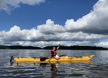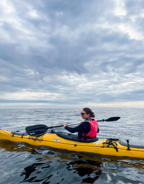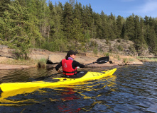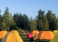 В 2024 году судьба преподнесла новый сюрприз: подруга позвала меня работать в кемпинг по прокату каяков. Полгода жизни в палатке, выходные — на воде, прогулки к островам, вечерами — костёр, чай с дымком и разговоры под звёздным куполом…