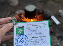 Прошла три спортивных маршрута 1 категории сложности, получен значок и удостоверение Туриста России.