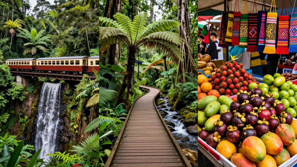 Сегодня мы садимся в поезд, которому больше ста лет. Kuranda Scenic Railway медленно петляет через туннели, мимо водопадов и буйной зелени, поднимаясь в деревню Куранда — врата в тропический лес. Здесь время течёт иначе. Мы отправляемся на прогулку по треку Jum Rum Creek: древовидные папоротники, лианы, пение птиц и влажный воздух, насыщенный кислородом. Затем — колоритный рынок, где можно попробовать диковинные фрукты (сахарное яблоко, рамбутан, мангостин) и купить сувениры ручной работы. Возвращение в Кэрнс — на автобусе, а вечером — заслуженный отдых у лагуны прямо на набережной.